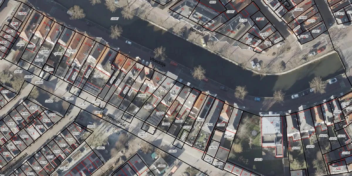Het perceel waarop Vloeddijk 22 staat heeft een oppervlakte van 186 m². Dit is een middelgroot perceel. De perceeloppervlakte wordt geregistreerd door het Kadaster. Gedetailleerde informatie over de maten van dit perceel kunt u vinden in het rapport Kadastrale kaart met maatvoering van Vloeddijk 22.