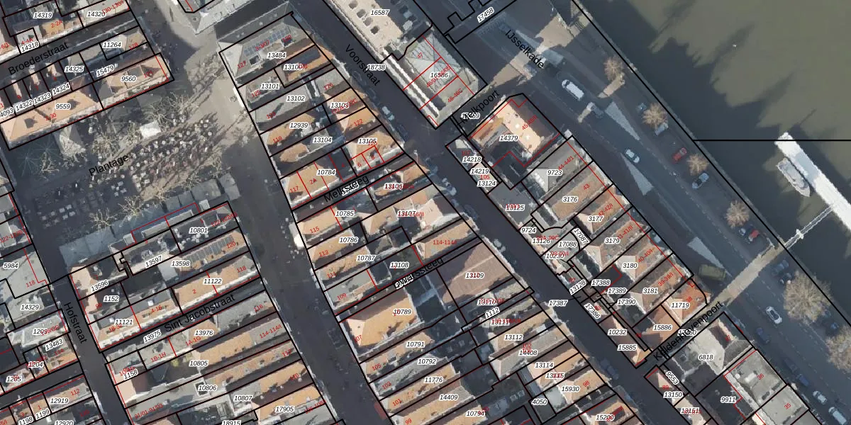 Voorstraat 116 is gelegen op kadastraal perceel KPN01F13107. Deze kadastrale aanduiding is uniek en wordt gebruikt door het Kadaster om eigendomsrechten en andere zakelijke rechten vast te leggen. Het perceel maakt onderdeel uit van de kadastrale gemeente Kampen.
