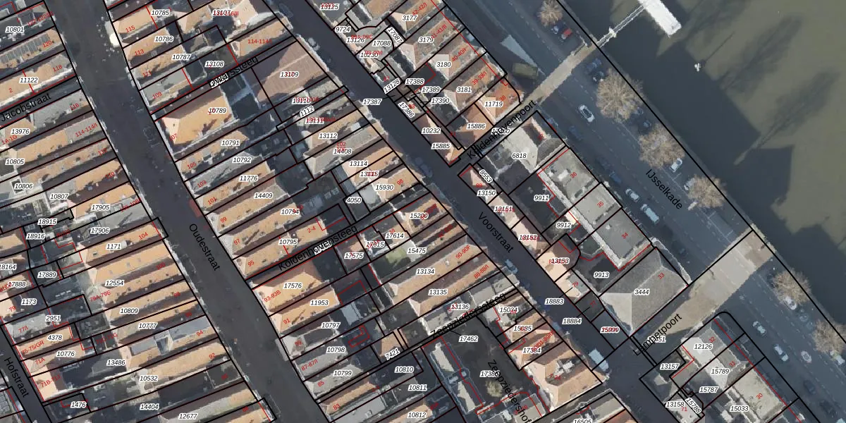 Het perceel waarop Voorstraat 96 staat heeft een oppervlakte van 71 m². Dit is een klein perceel. De perceeloppervlakte wordt geregistreerd door het Kadaster. Gedetailleerde informatie over de maten van dit perceel kunt u vinden in het rapport Kadastrale kaart met maatvoering van Voorstraat 96.