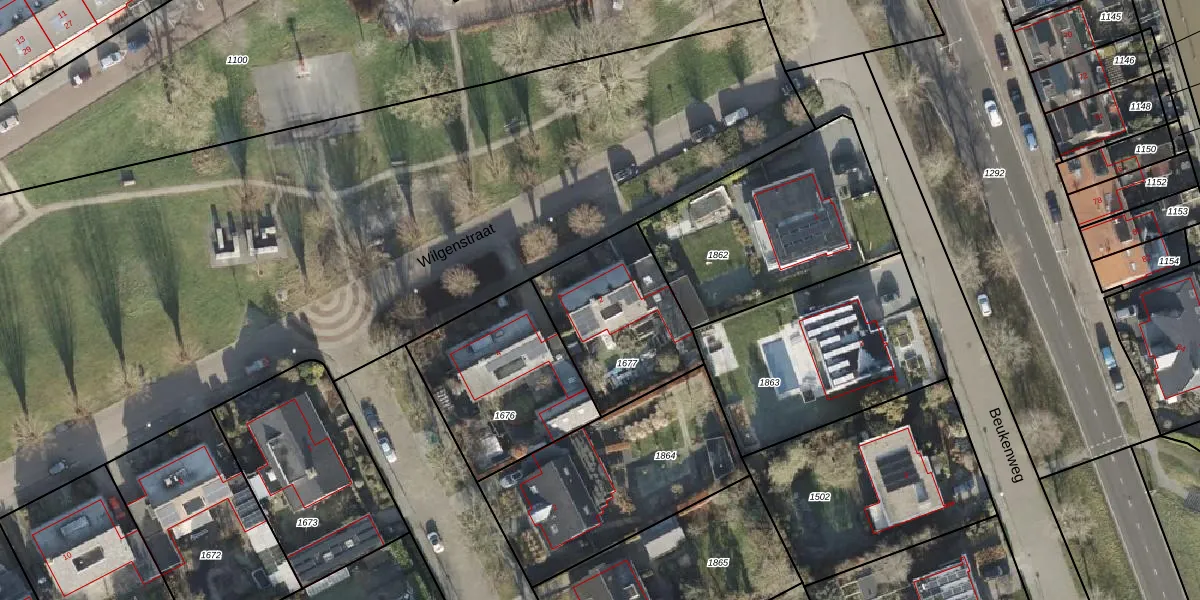 Het perceel waarop Wilgenstraat 2 staat heeft een oppervlakte van 522 m². Dit is een groot perceel. De perceeloppervlakte wordt geregistreerd door het Kadaster. Gedetailleerde informatie over de maten van dit perceel kunt u vinden in het rapport Kadastrale kaart met maatvoering van Wilgenstraat 2.