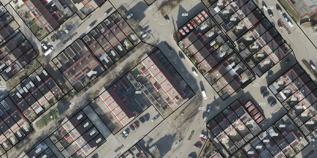 Het perceel waarop Winde 18 staat heeft een oppervlakte van 1724 m². Dit is een zeer groot perceel. De perceeloppervlakte wordt geregistreerd door het Kadaster. Gedetailleerde informatie over de maten van dit perceel kunt u vinden in het rapport Kadastrale kaart met maatvoering van Winde 18.