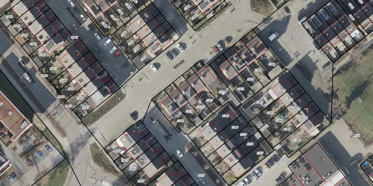 Gebruik de zoekbalk of klik op een perceel voor informatie over de adressen binnen dit perceel.