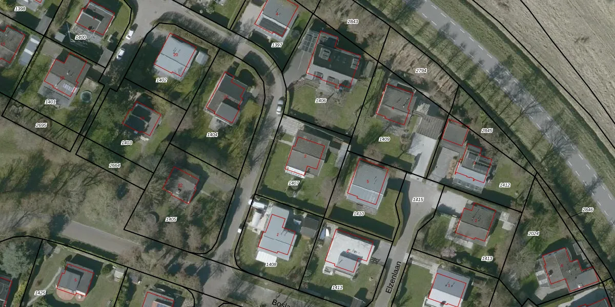 Gebruik de zoekbalk of klik op een perceel voor informatie over de adressen binnen dit perceel.