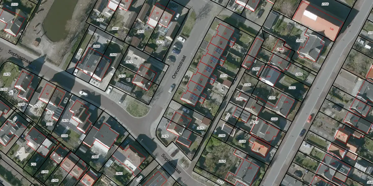 Het perceel waarop Onruststraat 27 staat heeft een oppervlakte van 1227 m². Dit is een zeer groot perceel. De perceeloppervlakte wordt geregistreerd door het Kadaster. Gedetailleerde informatie over de maten van dit perceel kunt u vinden in het rapport Kadastrale kaart met maatvoering van Onruststraat 27.