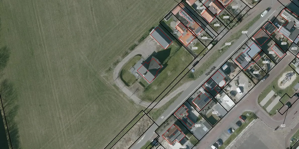Het perceel waarop Spuidijk 12 staat heeft een oppervlakte van 2,6 ha. Dit is een zeer groot perceel. De perceeloppervlakte wordt geregistreerd door het Kadaster. Gedetailleerde informatie over de maten van dit perceel kunt u vinden in het rapport Kadastrale kaart met maatvoering van Spuidijk 12.