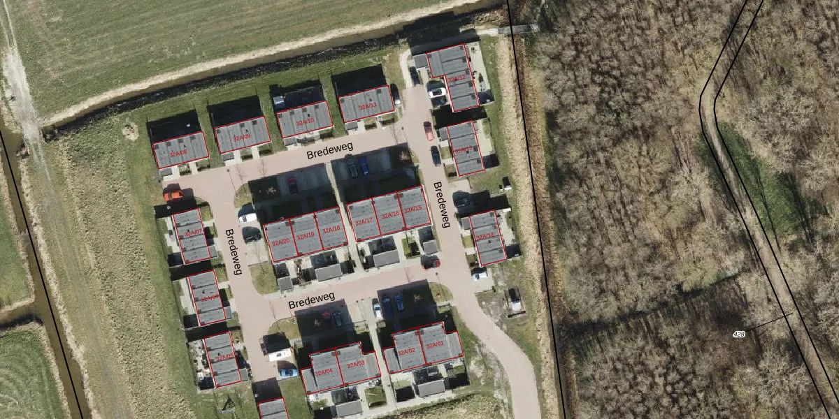 Het perceel waarop Bredeweg 32-A-15 staat heeft een oppervlakte van 5,2 ha. Dit is een zeer groot perceel. De perceeloppervlakte wordt geregistreerd door het Kadaster. Gedetailleerde informatie over de maten van dit perceel kunt u vinden in het rapport Kadastrale kaart met maatvoering van Bredeweg 32-A-15.