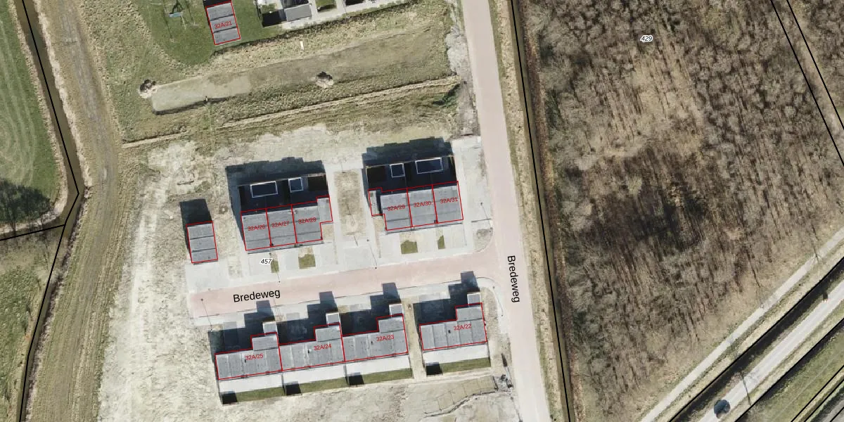 Het perceel waarop Bredeweg 32-A-30 staat heeft een oppervlakte van 5,2 ha. Dit is een zeer groot perceel. De perceeloppervlakte wordt geregistreerd door het Kadaster. Gedetailleerde informatie over de maten van dit perceel kunt u vinden in het rapport Kadastrale kaart met maatvoering van Bredeweg 32-A-30.
