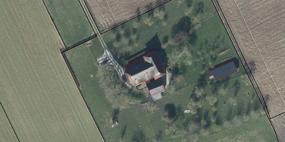 Het perceel waarop De Eng 14 staat heeft een oppervlakte van 1,5 ha. Dit is een zeer groot perceel. De perceeloppervlakte wordt geregistreerd door het Kadaster. Gedetailleerde informatie over de maten van dit perceel kunt u vinden in het rapport Kadastrale kaart met maatvoering van De Eng 14.