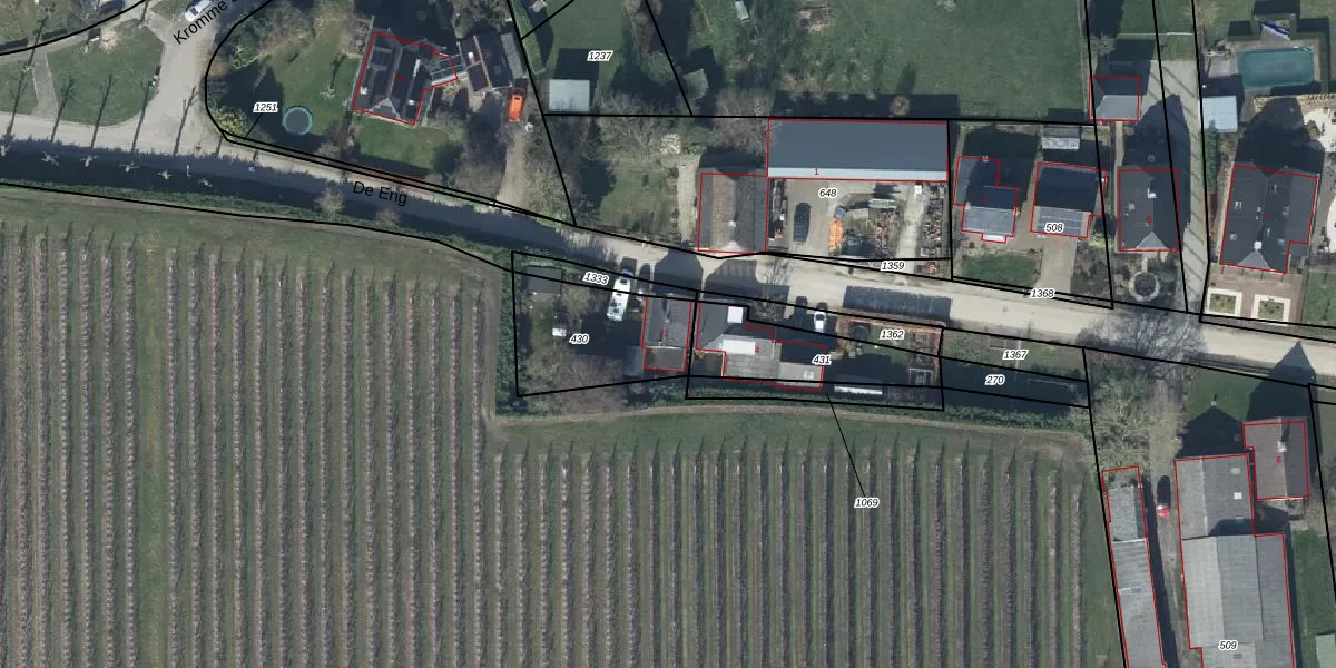 Het perceel waarop De Eng 2 staat heeft een oppervlakte van 390 m². Dit is een groot perceel. De perceeloppervlakte wordt geregistreerd door het Kadaster. Gedetailleerde informatie over de maten van dit perceel kunt u vinden in het rapport Kadastrale kaart met maatvoering van De Eng 2.
