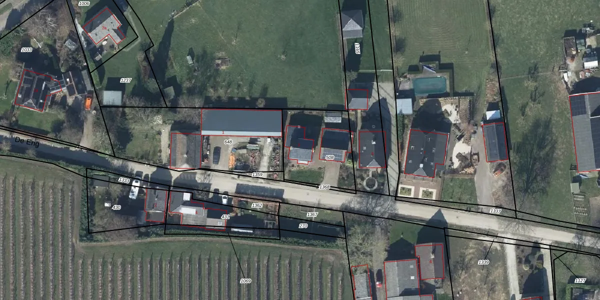 Gebruik de zoekbalk of klik op een perceel voor informatie over de adressen binnen dit perceel.