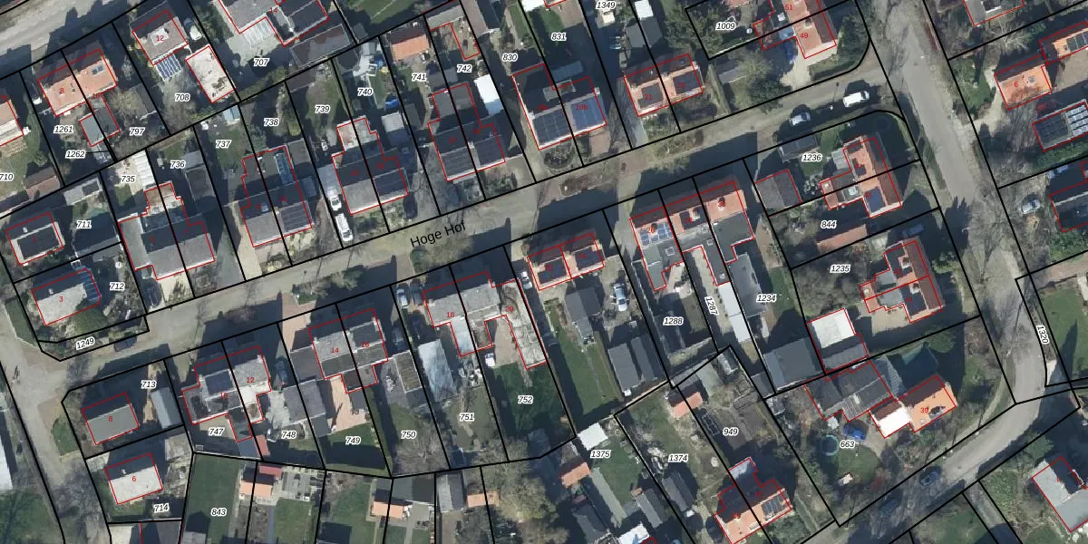 Het perceel waarop Hoge Hof 22 staat heeft een oppervlakte van 2075 m². Dit is een zeer groot perceel. De perceeloppervlakte wordt geregistreerd door het Kadaster. Gedetailleerde informatie over de maten van dit perceel kunt u vinden in het rapport Kadastrale kaart met maatvoering van Hoge Hof 22.