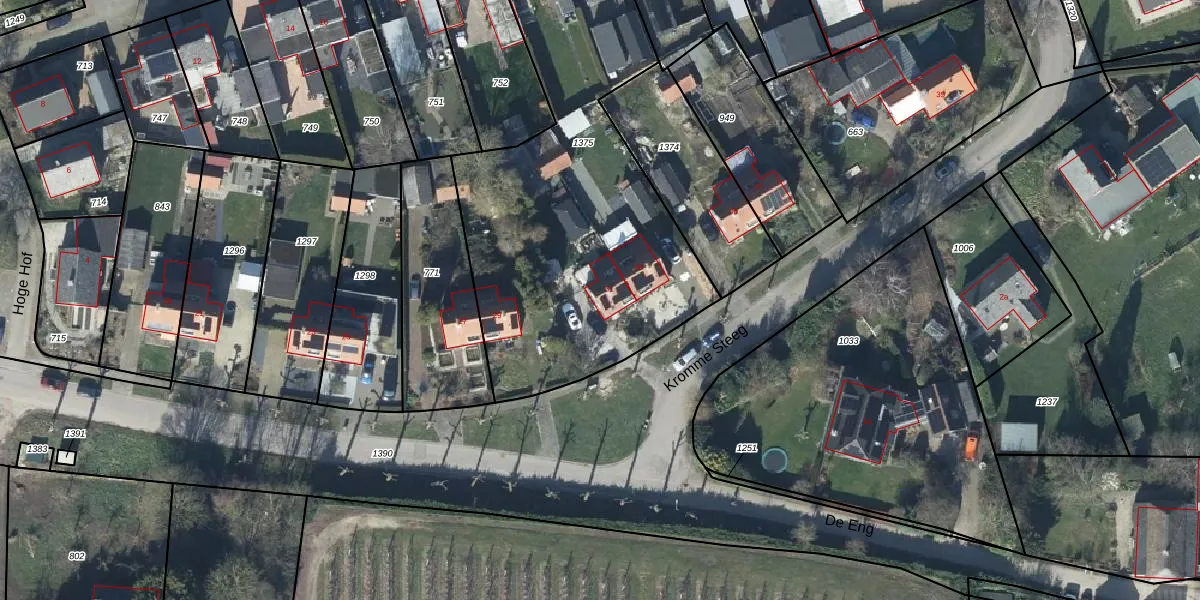Het perceel waarop Kromme Steeg 31 staat heeft een oppervlakte van 2075 m². Dit is een zeer groot perceel. De perceeloppervlakte wordt geregistreerd door het Kadaster. Gedetailleerde informatie over de maten van dit perceel kunt u vinden in het rapport Kadastrale kaart met maatvoering van Kromme Steeg 31.