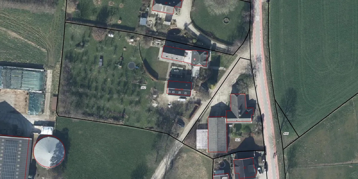 Het adres ligt op het perceel WDN03-E-562, dat zich in de kadastrale gemeente Wadenoijen bevindt. Het perceel is 4585 m² groot. Dat is kleiner dan de gemiddelde perceeloppervlakte in Wadenoijen, dat op 6560,98 m² ligt. Het kleinste perceel in de kadastrale gemeente is 1 m² groot. De grootste perceeloppervlakte is 17,9 ha. Op het perceel zijn 3 adressen aanwezig. De huidige grenzen van het perceel zijn digitaal in de Basisregistratie Kadaster (BRK) geregistreerd op 13-03-2003.