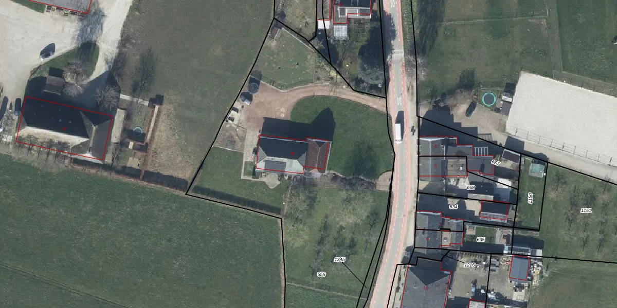 Het adres is gelegen op perceel 556 in de sectie E en de kadastrale gemeente Wadenoijen. De kadastrale aanduiding is aldus WDN03-E-556. Het perceel is kleiner dan gemiddeld in Wadenoijen. Het perceel is 6440 m² groot, terwijl het gemiddelde ligt op 6560,98 m². Het kleinste perceel in de kadastrale gemeente is 1 m² groot. De grootste perceeloppervlakte is 17,9 ha. Op het perceel bevinden zich geen andere adressen. In de Basisregistratie Kadaster (BRK) werden de grenzen van het perceel geregistreerd op 20-08-2020.