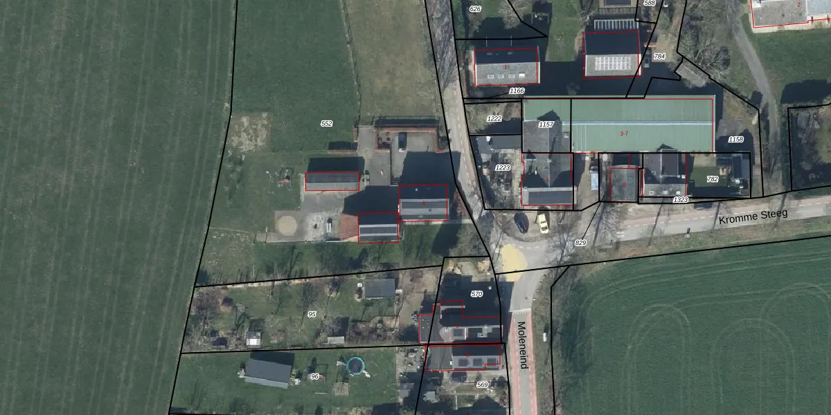 Het perceel waarop Moleneind 4 staat heeft een oppervlakte van 4934 m². Dit is een zeer groot perceel. De perceeloppervlakte wordt geregistreerd door het Kadaster. Gedetailleerde informatie over de maten van dit perceel kunt u vinden in het rapport Kadastrale kaart met maatvoering van Moleneind 4.