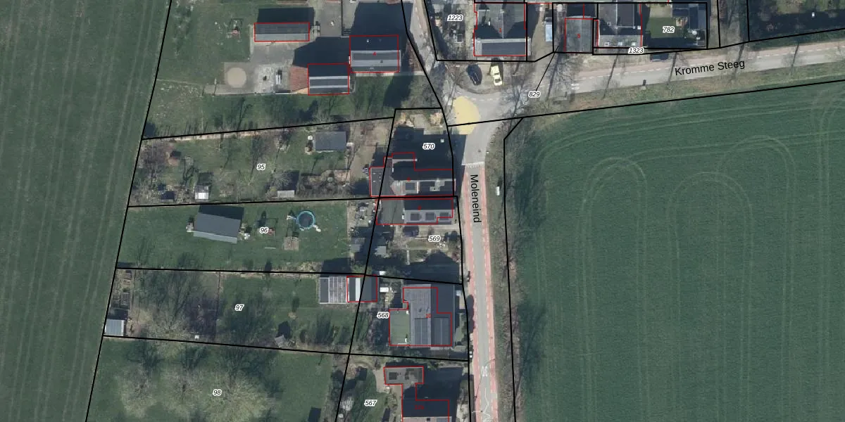 Gebruik de zoekbalk of klik op een perceel voor informatie over de adressen binnen dit perceel.