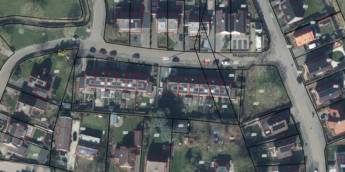 Muggenborch 11 is gelegen op kadastraal perceel TIE00P220. Deze kadastrale aanduiding is uniek en wordt gebruikt door het Kadaster om eigendomsrechten en andere zakelijke rechten vast te leggen. Het perceel maakt onderdeel uit van de kadastrale gemeente Tiel.