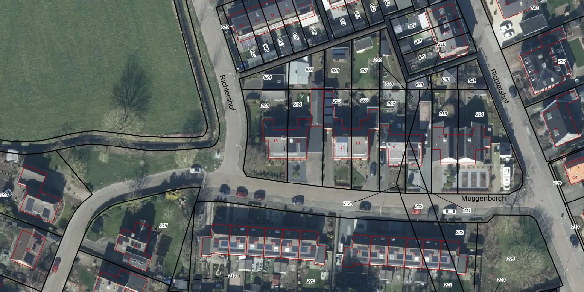 Het perceel waarop Muggenborch 14 staat heeft een oppervlakte van 419 m². Dit is een groot perceel. De perceeloppervlakte wordt geregistreerd door het Kadaster. Gedetailleerde informatie over de maten van dit perceel kunt u vinden in het rapport Kadastrale kaart met maatvoering van Muggenborch 14.