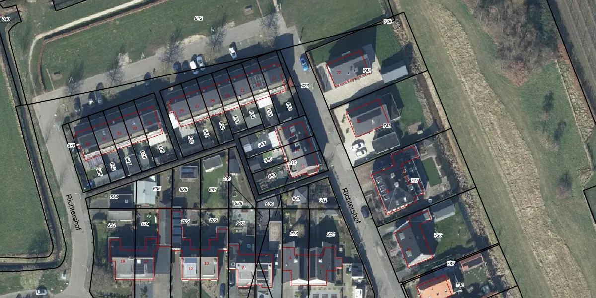 Richtershof 13 is gelegen op kadastraal perceel TIE00P658. Deze kadastrale aanduiding is uniek en wordt gebruikt door het Kadaster om eigendomsrechten en andere zakelijke rechten vast te leggen. Het perceel maakt onderdeel uit van de kadastrale gemeente Tiel.