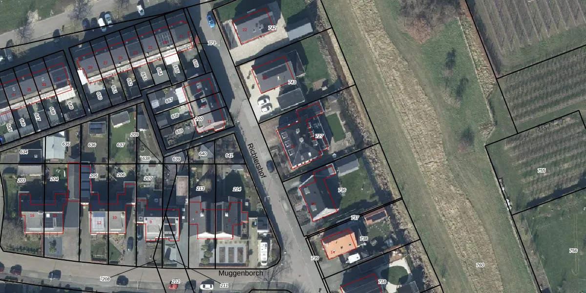 Het perceel waarop Richtershof 18 staat heeft een oppervlakte van 772 m². Dit is een groot perceel. De perceeloppervlakte wordt geregistreerd door het Kadaster. Gedetailleerde informatie over de maten van dit perceel kunt u vinden in het rapport Kadastrale kaart met maatvoering van Richtershof 18.