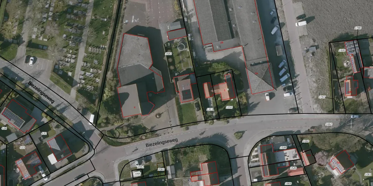 Het perceel waarop Biezelingseweg 4 staat heeft een oppervlakte van 3790 m². Dit is een zeer groot perceel. De perceeloppervlakte wordt geregistreerd door het Kadaster. Gedetailleerde informatie over de maten van dit perceel kunt u vinden in het rapport Kadastrale kaart met maatvoering van Biezelingseweg 4.