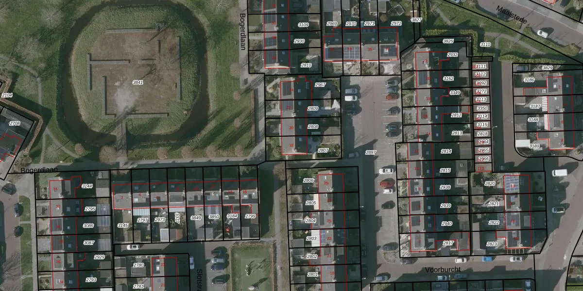 Het perceel waarop Bogerdlaan 18 staat heeft een oppervlakte van 213 m². Dit is een middelgroot perceel. De perceeloppervlakte wordt geregistreerd door het Kadaster. Gedetailleerde informatie over de maten van dit perceel kunt u vinden in het rapport Kadastrale kaart met maatvoering van Bogerdlaan 18.