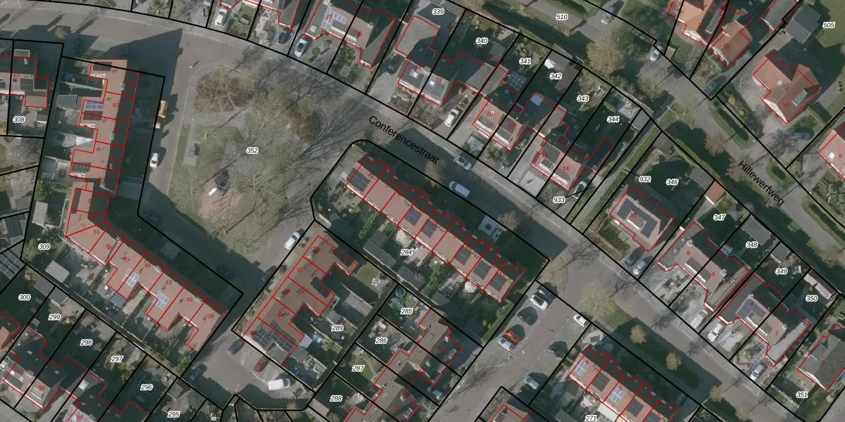 Het perceel waarop Conferencestraat 21 staat heeft een oppervlakte van 1331 m². Dit is een zeer groot perceel. De perceeloppervlakte wordt geregistreerd door het Kadaster. Gedetailleerde informatie over de maten van dit perceel kunt u vinden in het rapport Kadastrale kaart met maatvoering van Conferencestraat 21.