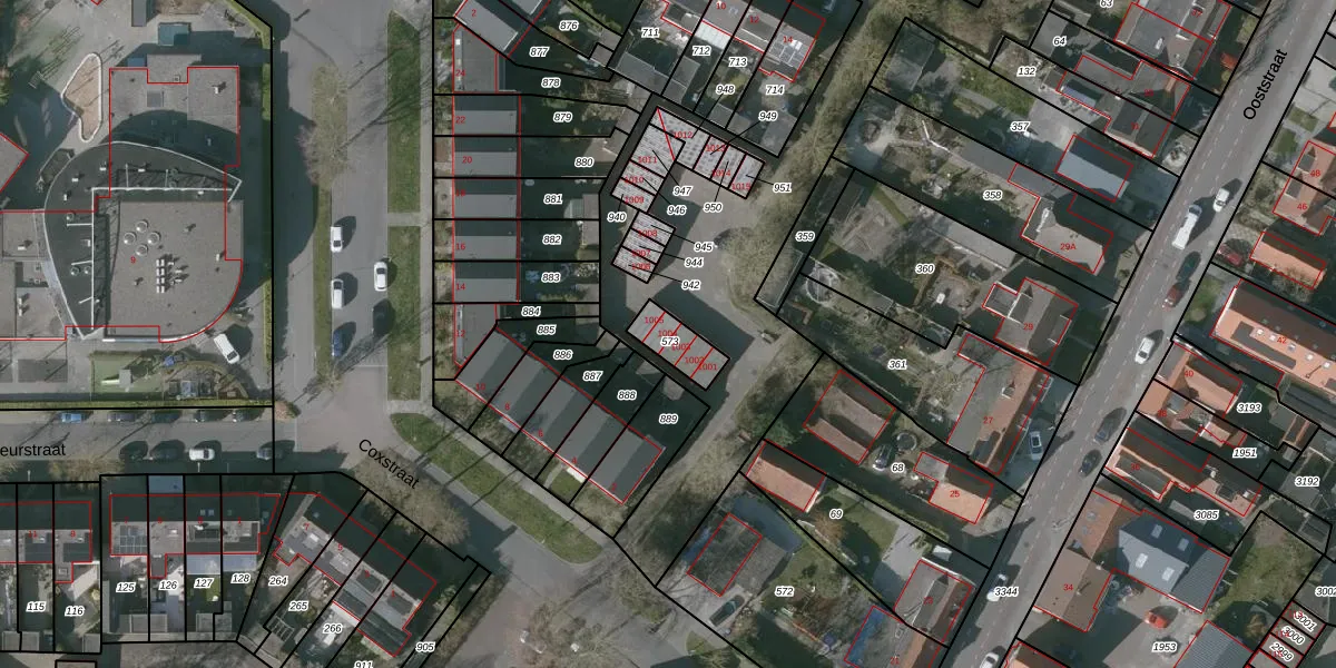 Het perceel waarop Coxstraat 1004 staat heeft een oppervlakte van 89 m². Dit is een klein perceel. De perceeloppervlakte wordt geregistreerd door het Kadaster. Gedetailleerde informatie over de maten van dit perceel kunt u vinden in het rapport Kadastrale kaart met maatvoering van Coxstraat 1004.