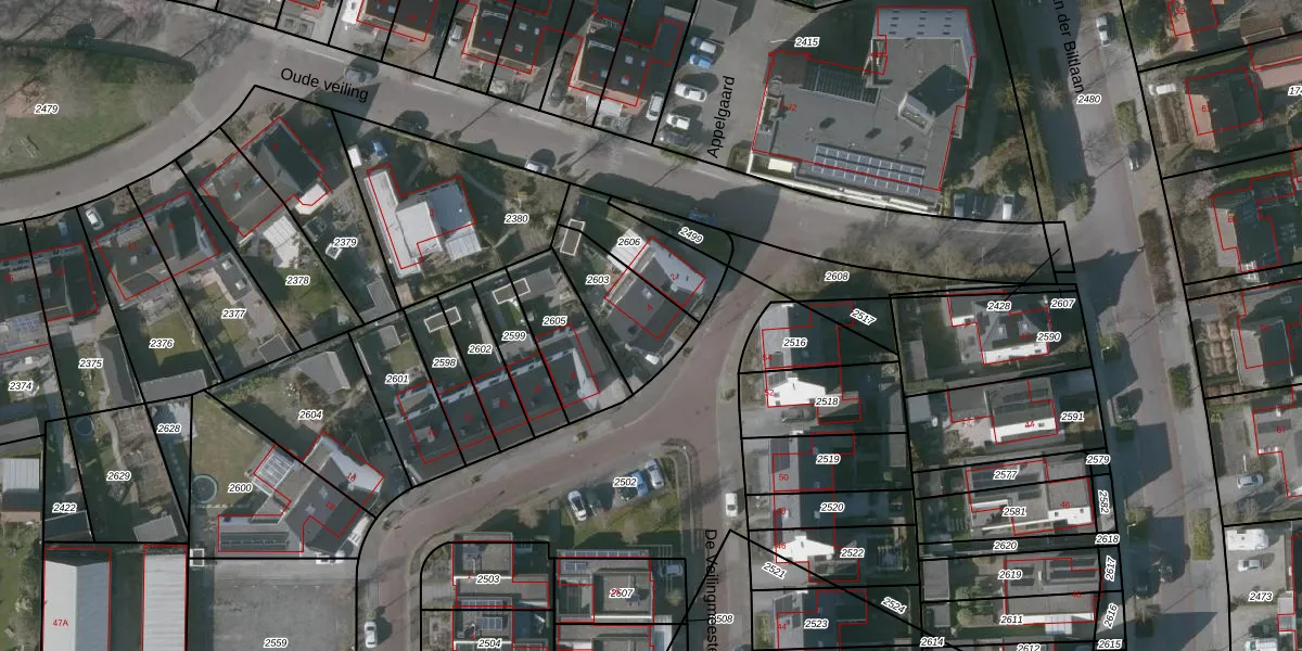 Gebruik de zoekbalk of klik op een perceel voor informatie over de adressen binnen dit perceel.