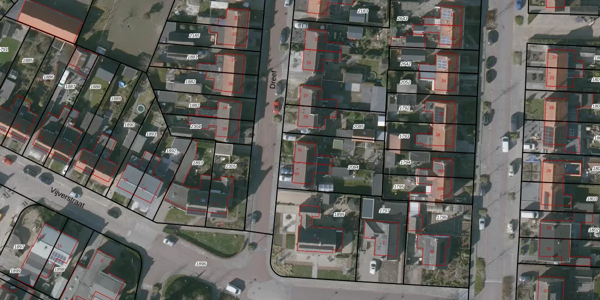 Het perceel waarop Dreef 31 staat heeft een oppervlakte van 634 m². Dit is een groot perceel. De perceeloppervlakte wordt geregistreerd door het Kadaster. Gedetailleerde informatie over de maten van dit perceel kunt u vinden in het rapport Kadastrale kaart met maatvoering van Dreef 31.