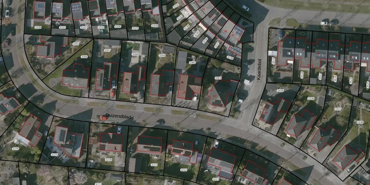 Het perceel waarop Duizendblad 21 staat heeft een oppervlakte van 487 m². Dit is een groot perceel. De perceeloppervlakte wordt geregistreerd door het Kadaster. Gedetailleerde informatie over de maten van dit perceel kunt u vinden in het rapport Kadastrale kaart met maatvoering van Duizendblad 21.