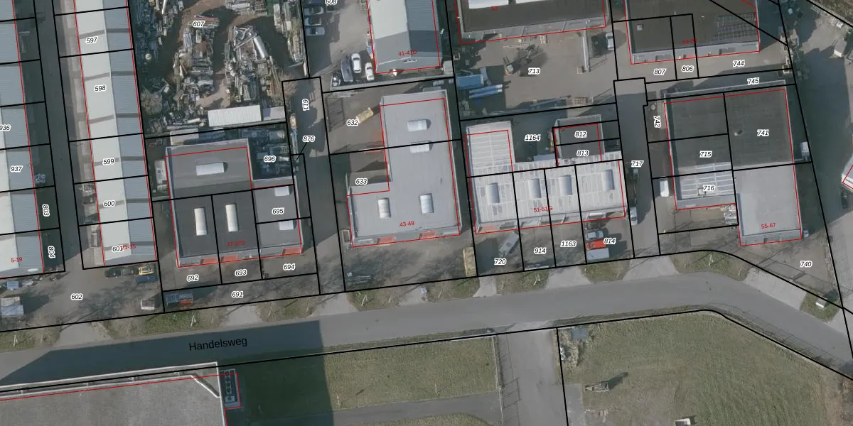 Het perceel waarop Handelsweg 49 staat heeft een oppervlakte van 1013 m². Dit is een zeer groot perceel. De perceeloppervlakte wordt geregistreerd door het Kadaster. Gedetailleerde informatie over de maten van dit perceel kunt u vinden in het rapport Kadastrale kaart met maatvoering van Handelsweg 49.