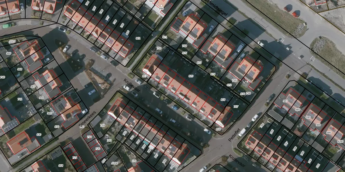 Krullevaar 33 is gelegen op kadastraal perceel KPL01O820. Deze kadastrale aanduiding is uniek en wordt gebruikt door het Kadaster om eigendomsrechten en andere zakelijke rechten vast te leggen. Het perceel maakt onderdeel uit van de kadastrale gemeente Kapelle.