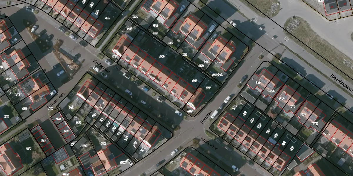 Krullevaar 41 is gelegen op kadastraal perceel KPL01O820. Deze kadastrale aanduiding is uniek en wordt gebruikt door het Kadaster om eigendomsrechten en andere zakelijke rechten vast te leggen. Het perceel maakt onderdeel uit van de kadastrale gemeente Kapelle.