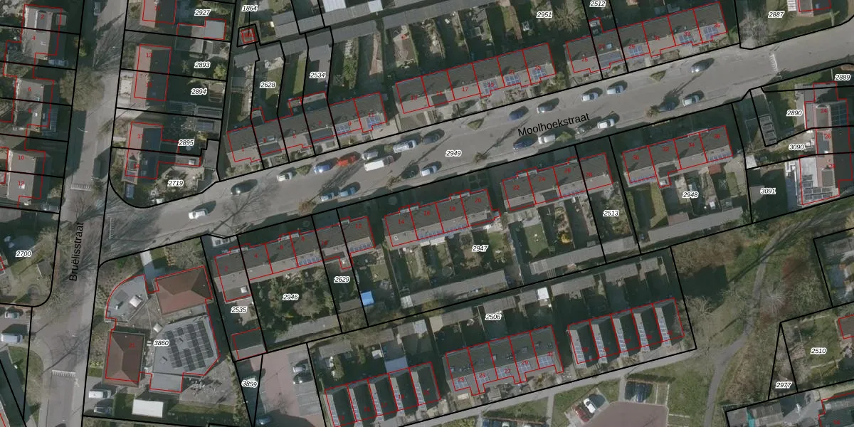 Moolhoekstraat 16 is gelegen op kadastraal perceel KPL01E2947. Deze kadastrale aanduiding is uniek en wordt gebruikt door het Kadaster om eigendomsrechten en andere zakelijke rechten vast te leggen. Het perceel maakt onderdeel uit van de kadastrale gemeente Kapelle.