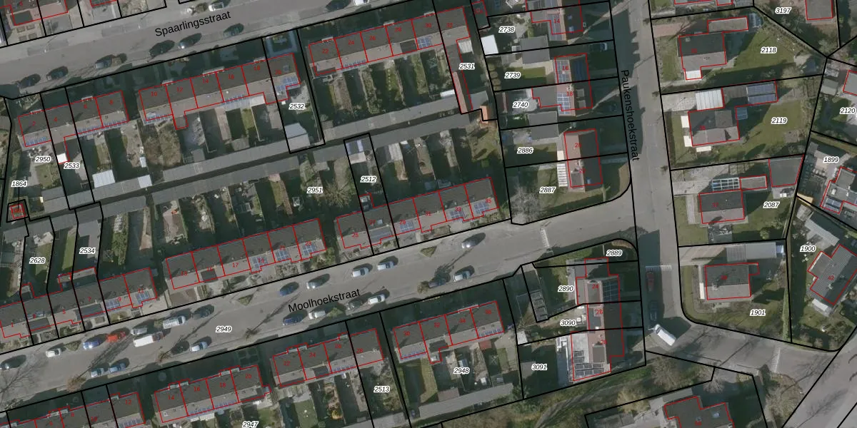 Het perceel waarop Moolhoekstraat 31 staat heeft een oppervlakte van 4760 m². Dit is een zeer groot perceel. De perceeloppervlakte wordt geregistreerd door het Kadaster. Gedetailleerde informatie over de maten van dit perceel kunt u vinden in het rapport Kadastrale kaart met maatvoering van Moolhoekstraat 31.