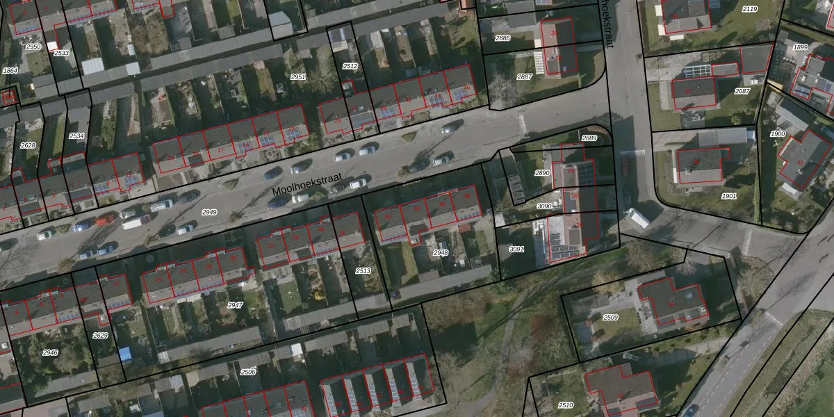 Moolhoekstraat 32 is gelegen op kadastraal perceel KPL01E2948. Deze kadastrale aanduiding is uniek en wordt gebruikt door het Kadaster om eigendomsrechten en andere zakelijke rechten vast te leggen. Het perceel maakt onderdeel uit van de kadastrale gemeente Kapelle.