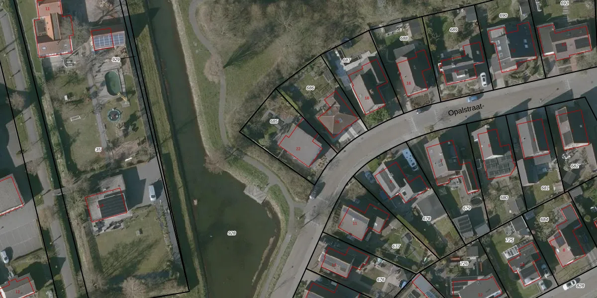Opalstraat 22 is gelegen op kadastraal perceel KPL01U685. Deze kadastrale aanduiding is uniek en wordt gebruikt door het Kadaster om eigendomsrechten en andere zakelijke rechten vast te leggen. Het perceel maakt onderdeel uit van de kadastrale gemeente Kapelle.