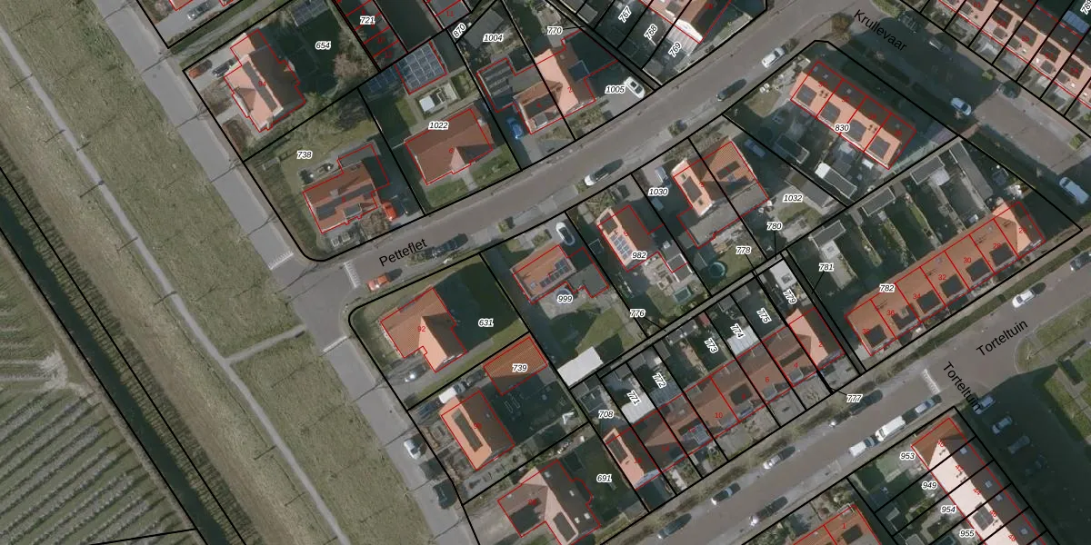Petteflet 7 is gelegen op kadastraal perceel KPL01O999. Deze kadastrale aanduiding is uniek en wordt gebruikt door het Kadaster om eigendomsrechten en andere zakelijke rechten vast te leggen. Het perceel maakt onderdeel uit van de kadastrale gemeente Kapelle.