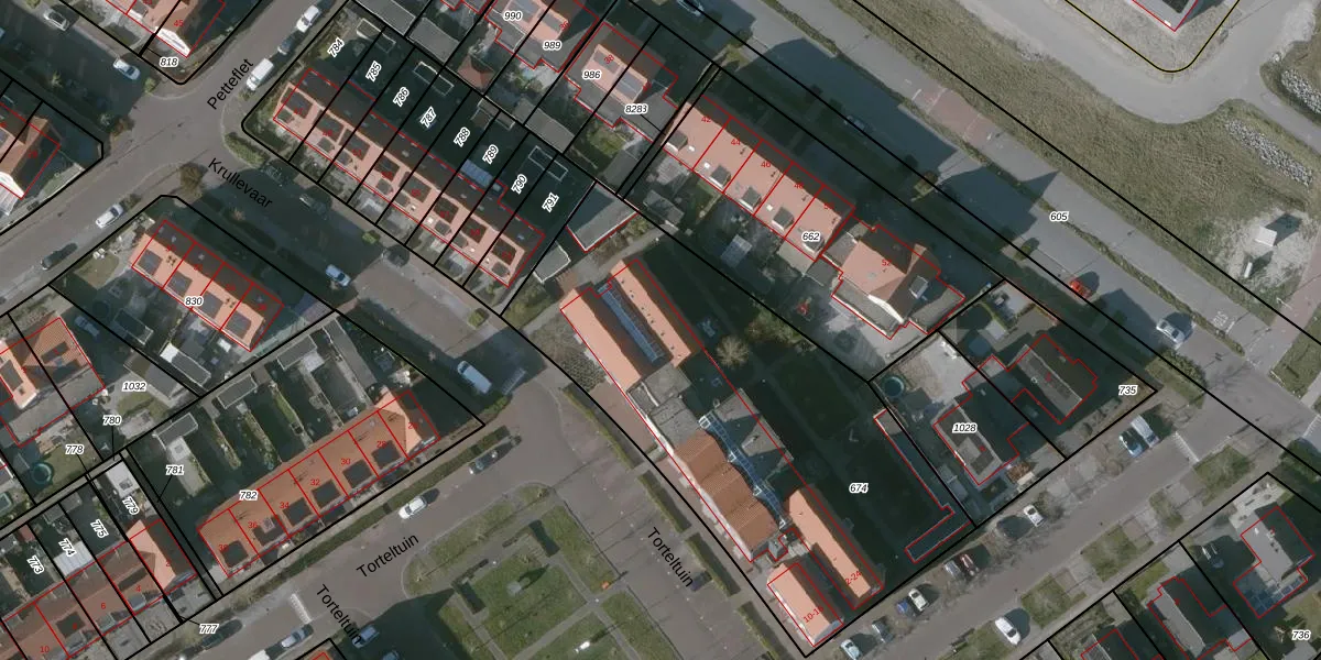 Torteltuin 24 is gelegen op kadastraal perceel KPL01O674. Deze kadastrale aanduiding is uniek en wordt gebruikt door het Kadaster om eigendomsrechten en andere zakelijke rechten vast te leggen. Het perceel maakt onderdeel uit van de kadastrale gemeente Kapelle.