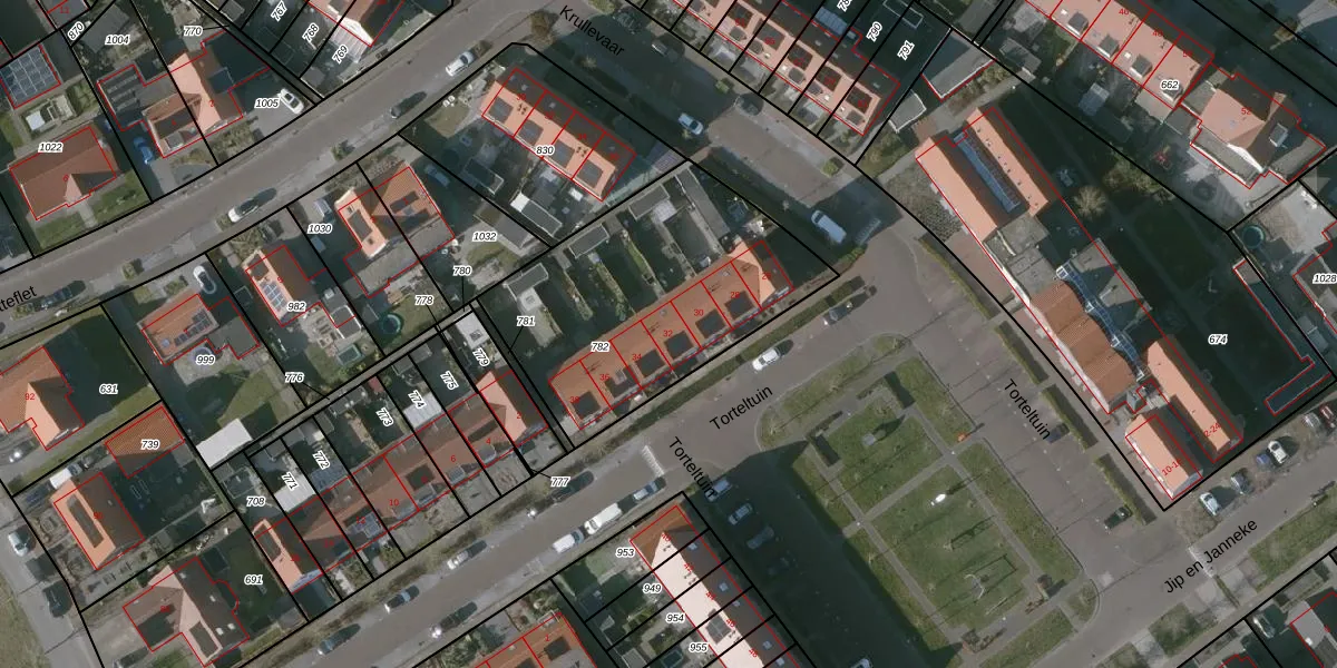 Torteltuin 32 is gelegen op kadastraal perceel KPL01O782. Deze kadastrale aanduiding is uniek en wordt gebruikt door het Kadaster om eigendomsrechten en andere zakelijke rechten vast te leggen. Het perceel maakt onderdeel uit van de kadastrale gemeente Kapelle.
