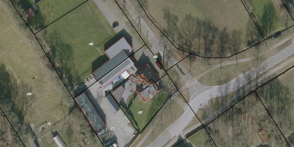 Het perceel waarop Houtlaan 1 staat heeft een oppervlakte van 1720 m². Dit is een zeer groot perceel. De perceeloppervlakte wordt geregistreerd door het Kadaster. Gedetailleerde informatie over de maten van dit perceel kunt u vinden in het rapport Kadastrale kaart met maatvoering van Houtlaan 1.