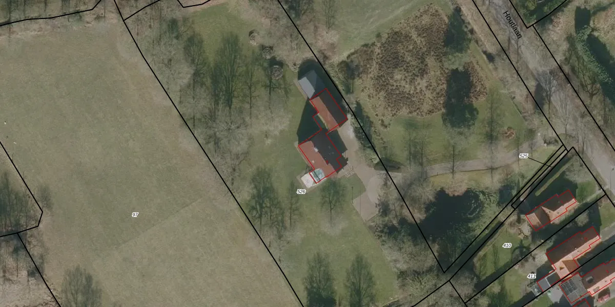 Het perceel waarop Houtlaan 9 staat heeft een oppervlakte van 5812 m². Dit is een zeer groot perceel. De perceeloppervlakte wordt geregistreerd door het Kadaster. Gedetailleerde informatie over de maten van dit perceel kunt u vinden in het rapport Kadastrale kaart met maatvoering van Houtlaan 9.