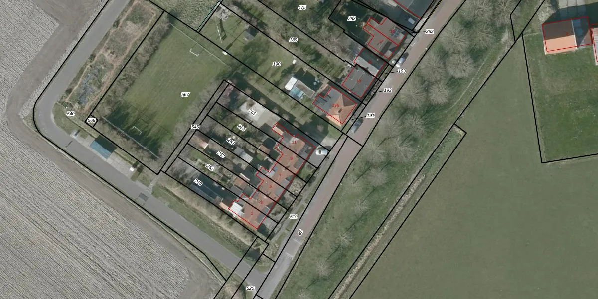 Het adres ligt op het perceel KGN00-O-265, dat zich in de kadastrale gemeente Kortgene bevindt. Het perceel is kleiner dan gemiddeld in Kortgene. Het perceel is 315 m² groot, terwijl het gemiddelde ligt op 1,3 ha. Het grootste perceel in de kadastrale gemeente is 21,63 km². Het kleinste perceel heeft een oppervlakte van 0 m². Er zijn geen andere adressen aanwezig op het perceel. De laatste wijziging in het de Basisregistratie Kadaster (BRK) was op 03-06-2014.