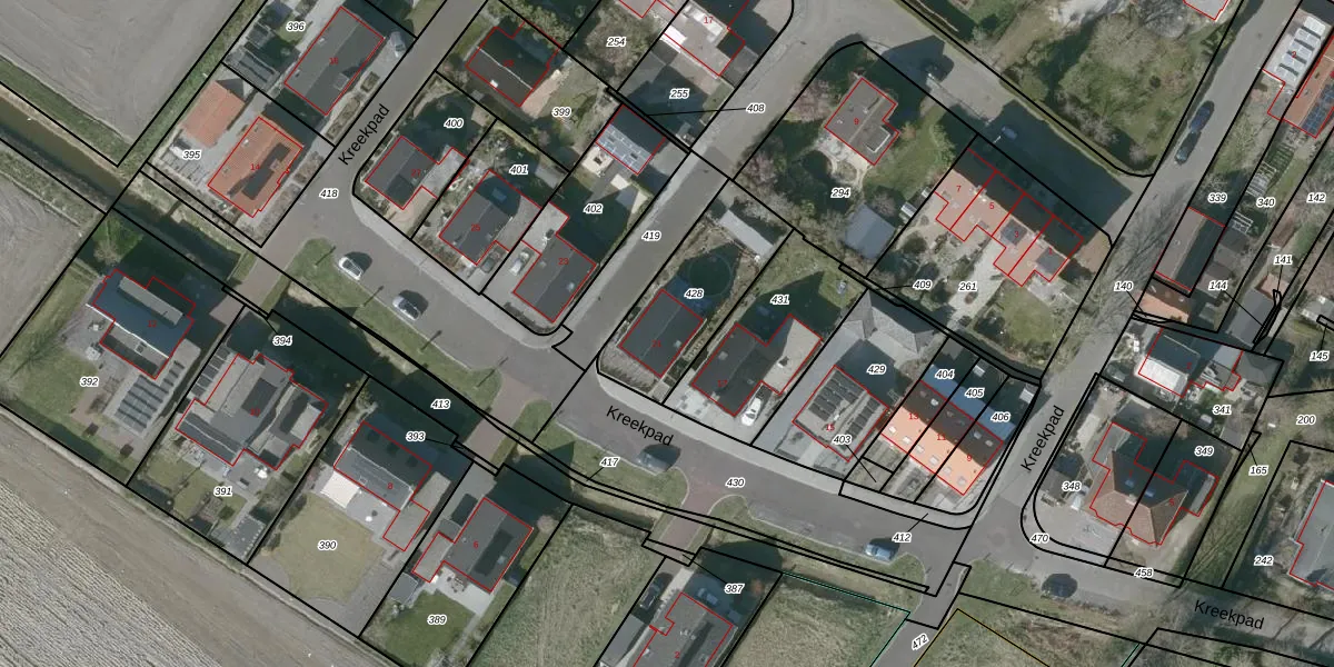 Gebruik de zoekbalk of klik op een perceel voor informatie over de adressen binnen dit perceel.