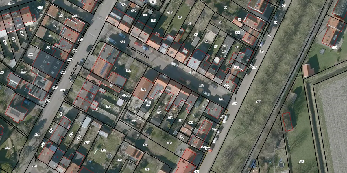 Middenstraat 6 is gelegen op kadastraal perceel KGN00G110. Deze kadastrale aanduiding is uniek en wordt gebruikt door het Kadaster om eigendomsrechten en andere zakelijke rechten vast te leggen. Het perceel maakt onderdeel uit van de kadastrale gemeente Kortgene.