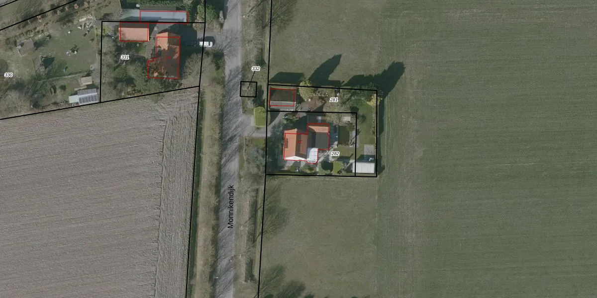 Monnikendijk 41 is gelegen op kadastraal perceel GOE00X282. Deze kadastrale aanduiding is uniek en wordt gebruikt door het Kadaster om eigendomsrechten en andere zakelijke rechten vast te leggen. Het perceel maakt onderdeel uit van de kadastrale gemeente Goes.
