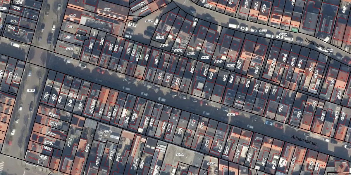 Het perceel waarop Adrianastraat 34 staat heeft een oppervlakte van 100 m². Dit is een middelgroot perceel. De perceeloppervlakte wordt geregistreerd door het Kadaster. Gedetailleerde informatie over de maten van dit perceel kunt u vinden in het rapport Kadastrale kaart met maatvoering van Adrianastraat 34.