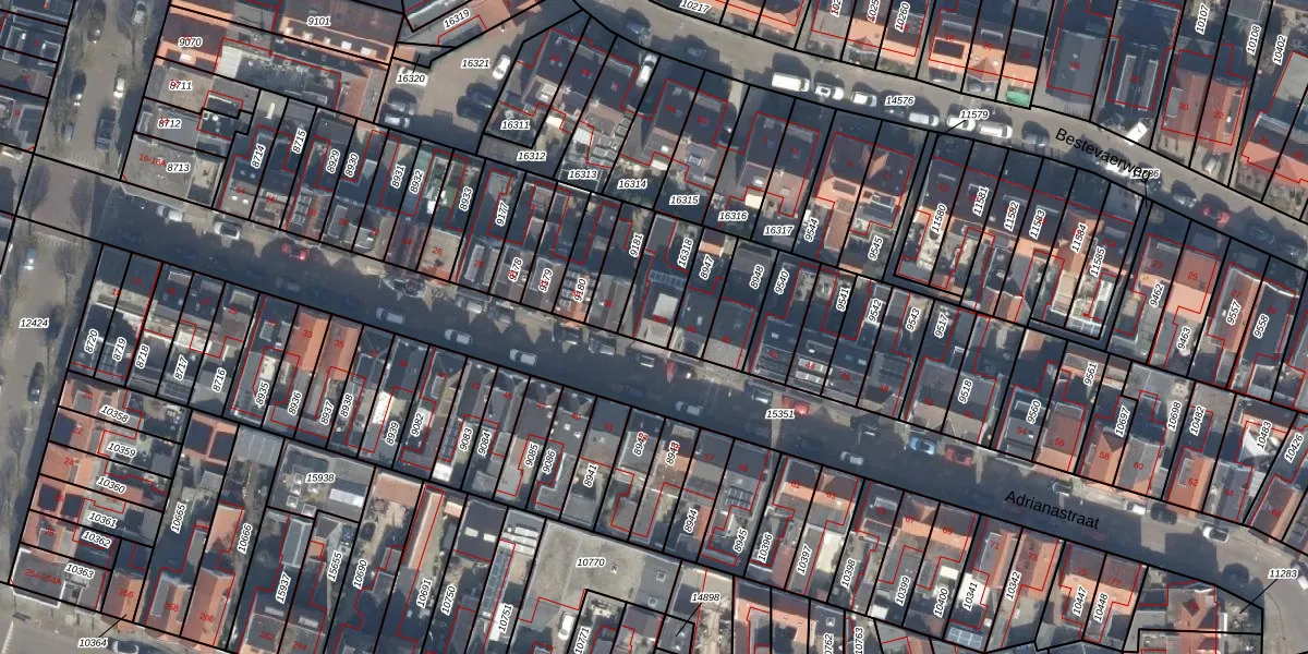 Het perceel waarop Adrianastraat 36-A staat heeft een oppervlakte van 158 m². Dit is een middelgroot perceel. De perceeloppervlakte wordt geregistreerd door het Kadaster. Gedetailleerde informatie over de maten van dit perceel kunt u vinden in het rapport Kadastrale kaart met maatvoering van Adrianastraat 36-A.