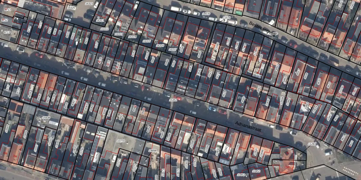 Het perceel waarop Adrianastraat 44 staat heeft een oppervlakte van 111 m². Dit is een middelgroot perceel. De perceeloppervlakte wordt geregistreerd door het Kadaster. Gedetailleerde informatie over de maten van dit perceel kunt u vinden in het rapport Kadastrale kaart met maatvoering van Adrianastraat 44.